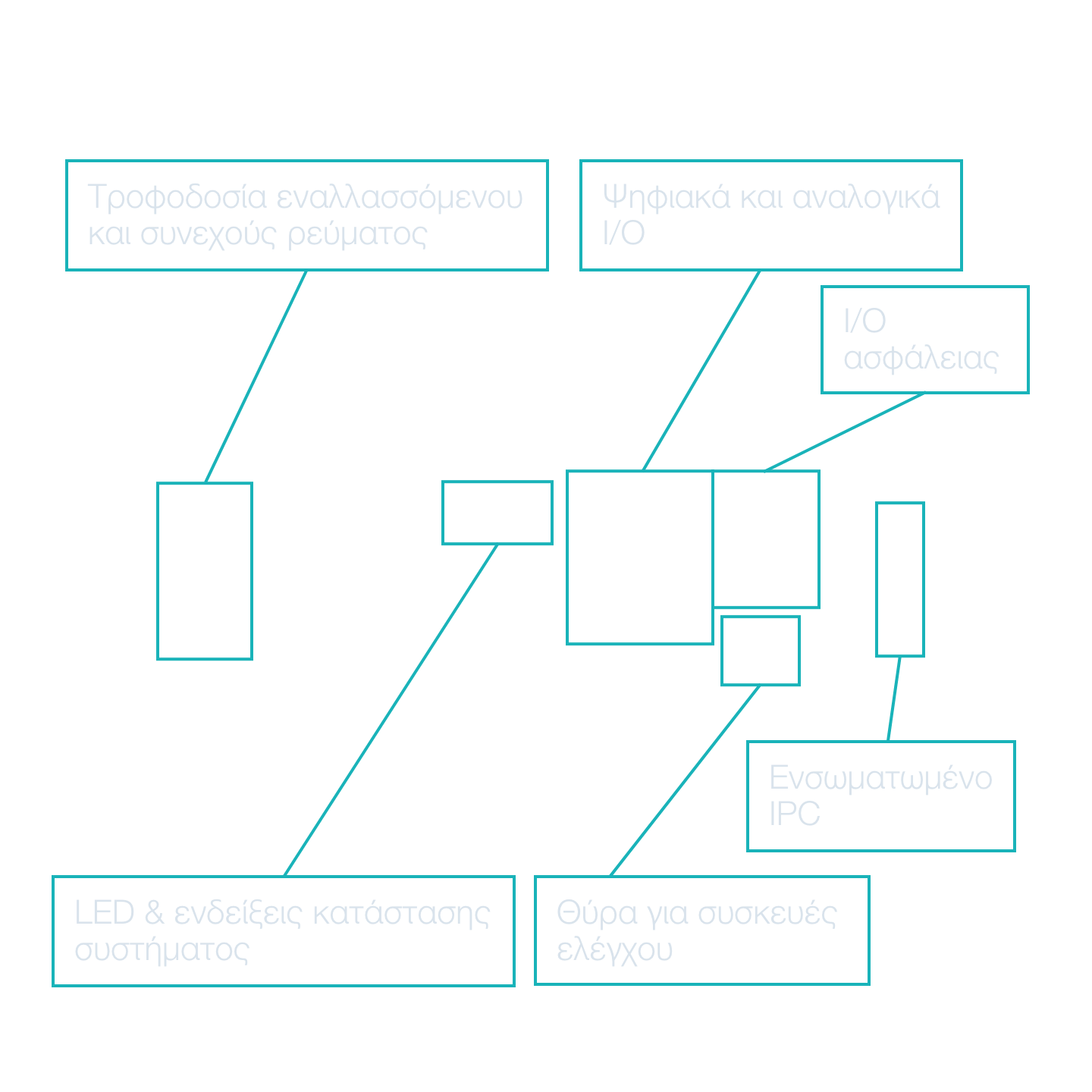 24 × 24V DC, 5A Ψηφιακή: 16 × I/O, 1A έκαστο Αναλογικό: 4 × I/O [0-10V] ή [4-20mA] |