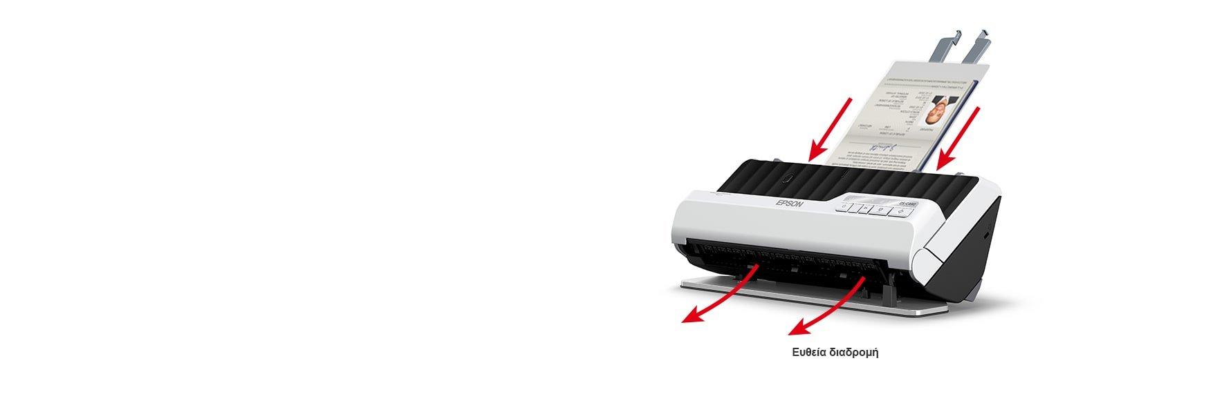 Η θέση της διαδρομής αναστροφής του σαρωτή επιτρέπει τη σάρωση χαρτιού χωρίς να αυξάνεται το εμβαδόν βάσης της συσκευής. Ιδανικός για πελάτες που έχουν περιορισμένο χώρο εργασίας.